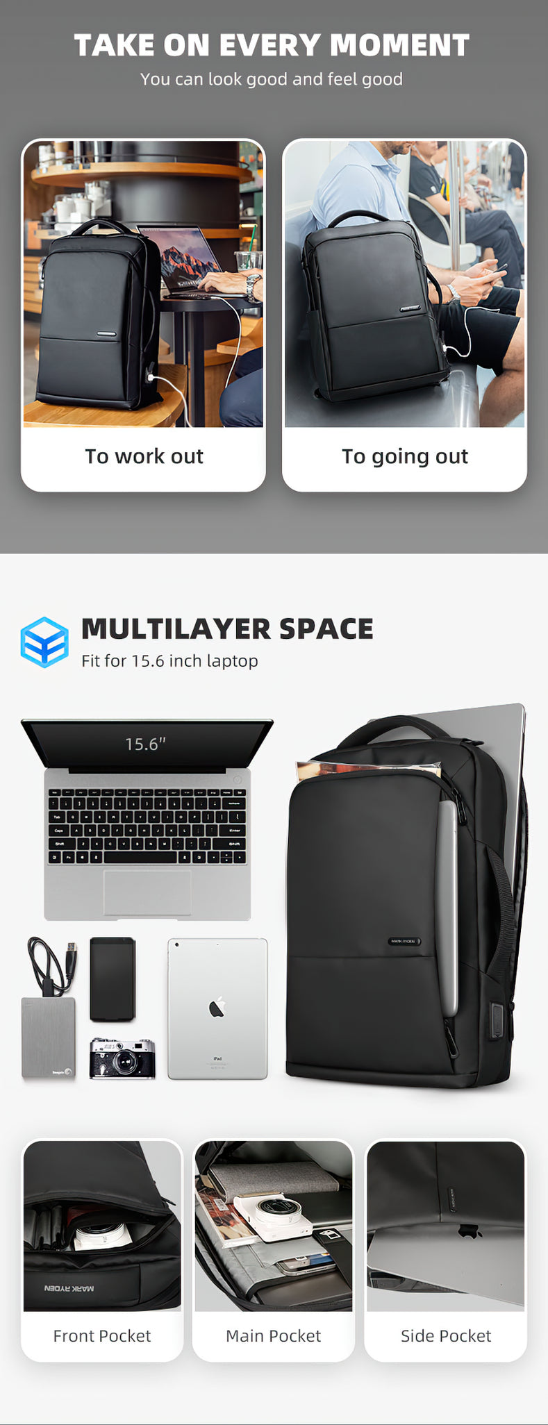 Mark Ryden Bags for Laptop Black Backpack Men Light Laptop Bags High Quality School Backpack