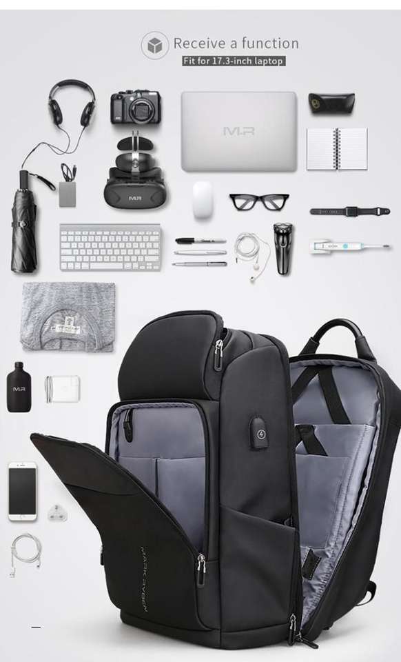 نوع المنتج: حقيبة ظهر سفر مارك رايدن بسعة كبيرة، مقاومة للماء، حقيبة ظهر مدرسية سحرية