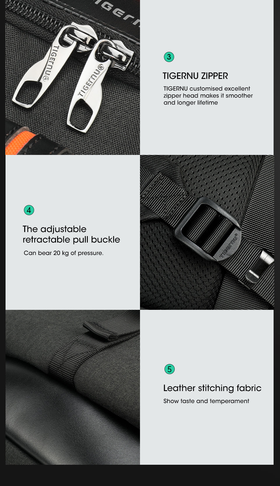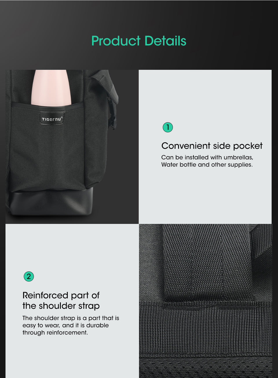 Tigernu 15.6 inch roll top bagpack man multifunctional travel bag for college boys