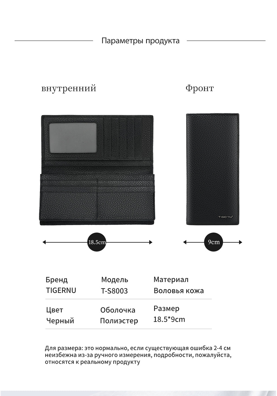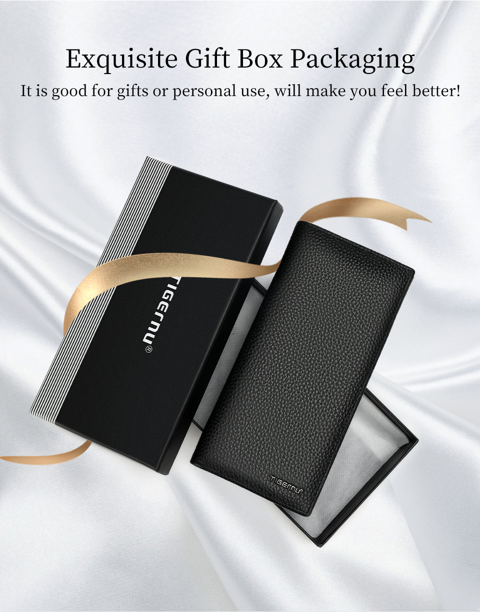 TIGERNU Craftsmanship Design 10 Inch Top Layer Cowhide Durable and Sturdy Classic Style Business Communication Daily Men's Wallet