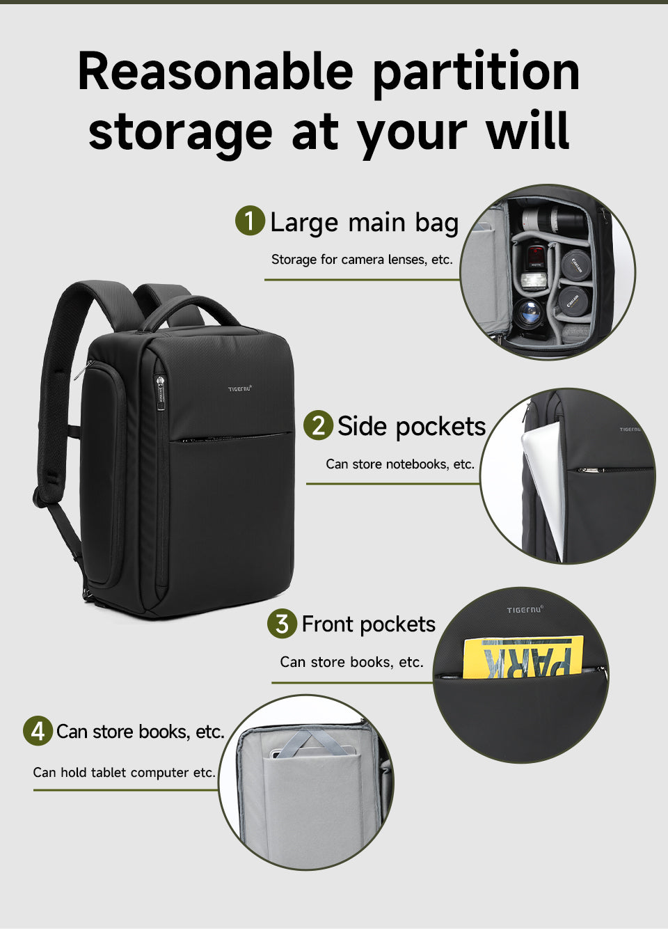 Tigernu Detachable Multi-pocket 14 Inch Nylon Waterproof Breathable Outdoor Photography Travel Camera Bag