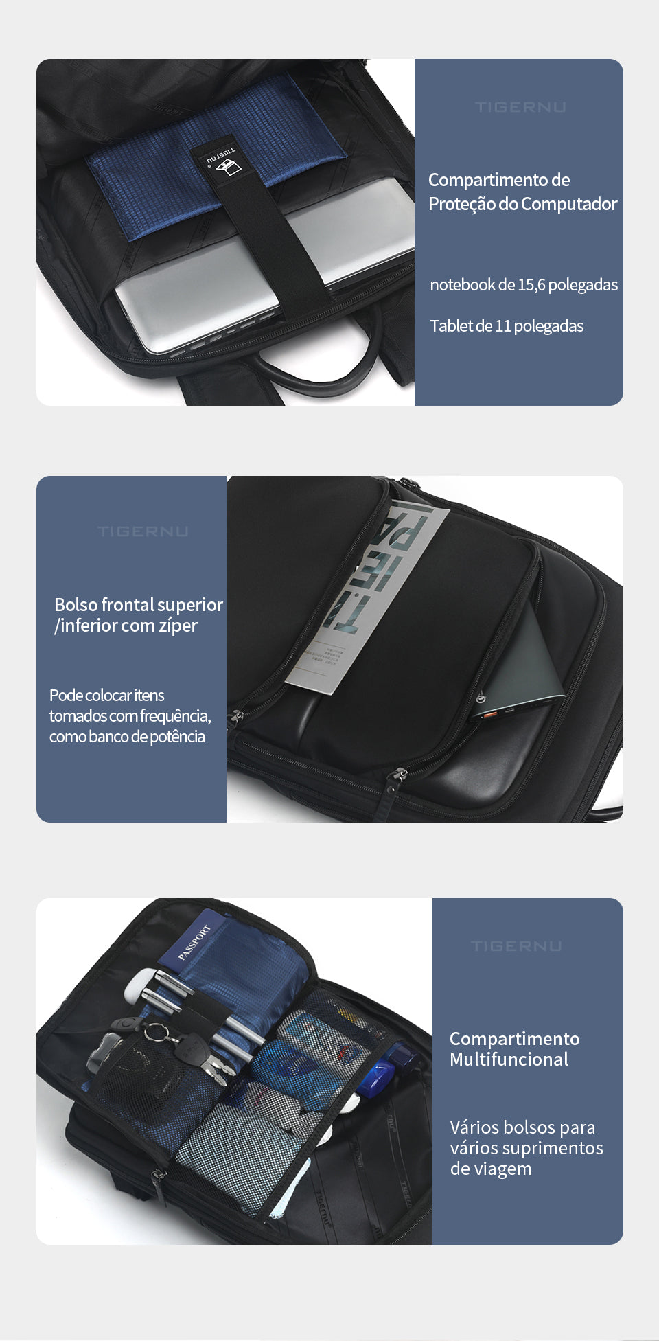 Tigernu Fashion Daily Portable Lightweight Laptop Bag Nylon S-Shaped Ergonomic Dynamic Expansion Men's Backpacks Backpack for Men