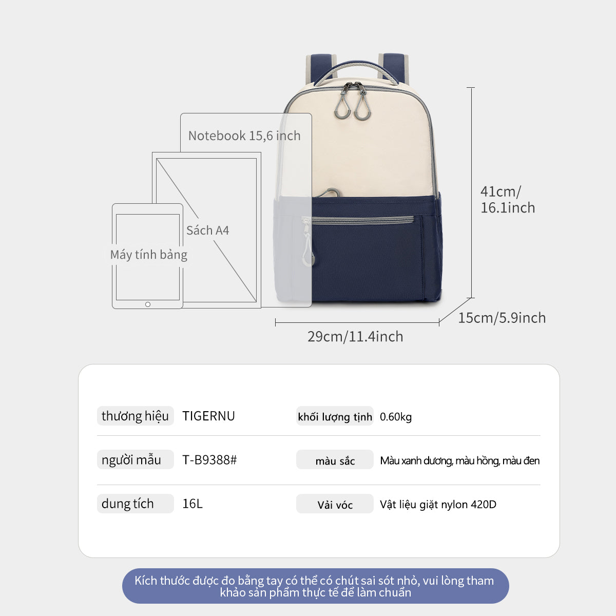 Tigernu Large Capacity Multi-pocket Layered Storage 15.6 Inch Waterproof Lightweight Commuter Campus Daily Backpack